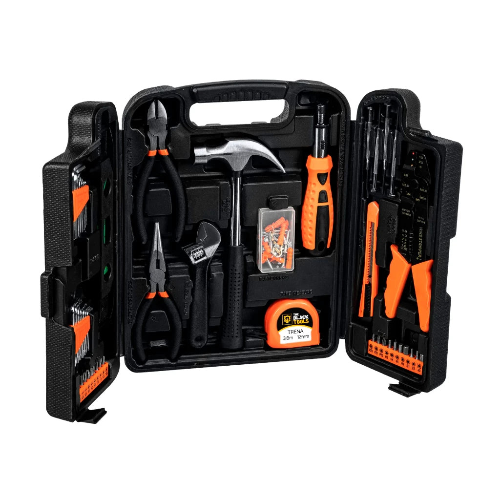 São 129 peças selecionadas para atender a múltiplas necessidades: desde montar móveis e apertar parafusos até fazer ajustes rápidos em equipamentos e instalações.